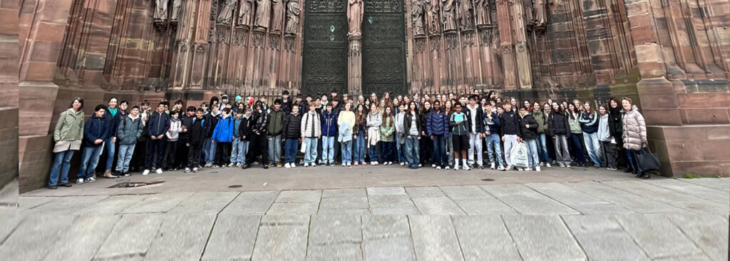 Der Tag am 14. April 2026 begann damit, dass die rund 100 Schülerinnen und Schüler sich an der Bushaltestelle vor der Schule mit Frau Dörsam, Frau Hirschmann, Frau Wilhelm-Legner und Frau Wenner getroffen haben. Nach 15 Minuten, als sich alle Klassen versammelt hatten, begann auch schon die zweistündige Fahrt mit den beiden Reisebussen nach Straßburg. […]