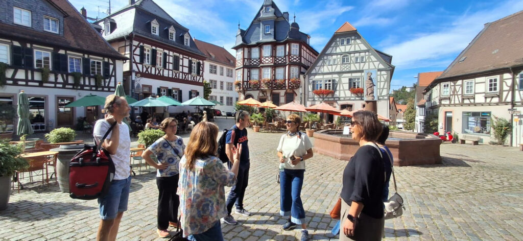Neben der Arbeit am Projekt ließen wir, Frau Trost und Frau Albinus, es uns natürlich nicht nehmen, den Gästen auch die Stadt Heppenheim zu zeigen. Dank des sehr informativen und kurzweiligen Stadtspaziergangs, den Frau Borger (Touristeninformation Heppenheim) mit uns gestaltete, erfuhren wir viel Neues über unsere eigene Stadt. Unsere Gäste zeigten sich nach eigenen Angaben regelrecht verzaubert von der wunderschönen Altstadt und den vielen Geschichten, die Heppenheim zu erzählen hat.