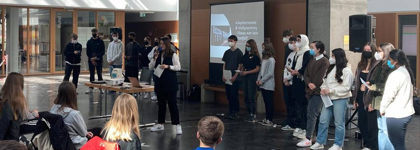 Als Referendarin Melda Sapancilar im Ethikunterricht auf das Thema „Rassismus“ zu sprechen kommt, haben die Schüler sich auch darüber unterhalten, was sie selbst tun können. Daraus ist eine ganze Menge entstanden. Die Klasse hat seit mehreren Wochen einen rund einstündigen und interaktiven Vortrag für ihre Mitschüler vorbereitet: #saytheirnames & #tellyourstory – Hanau war kein Einzelfall. Dafür haben sie nicht nur Schüler der neunten und zehnten Jahrgangsstufe befragt, sondern sogar zwei eigene Beispiele mitgebracht.