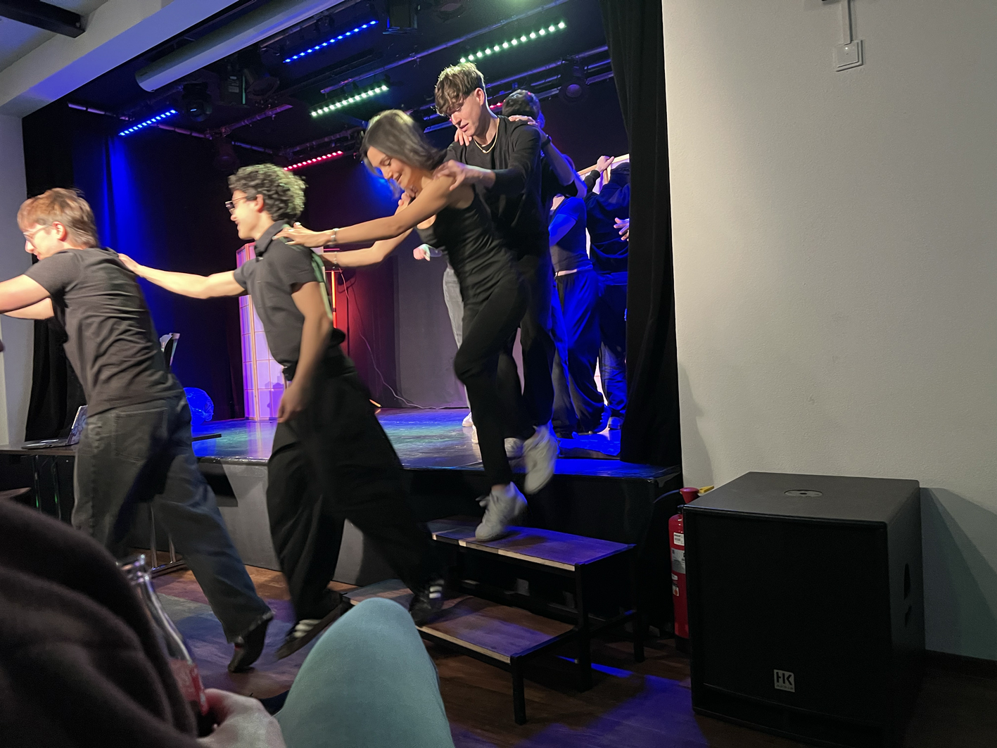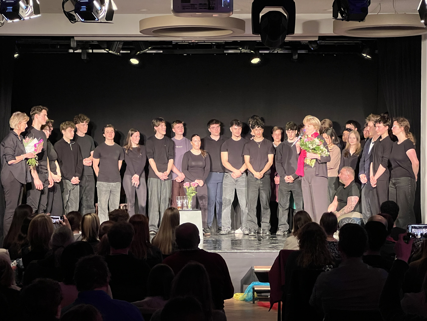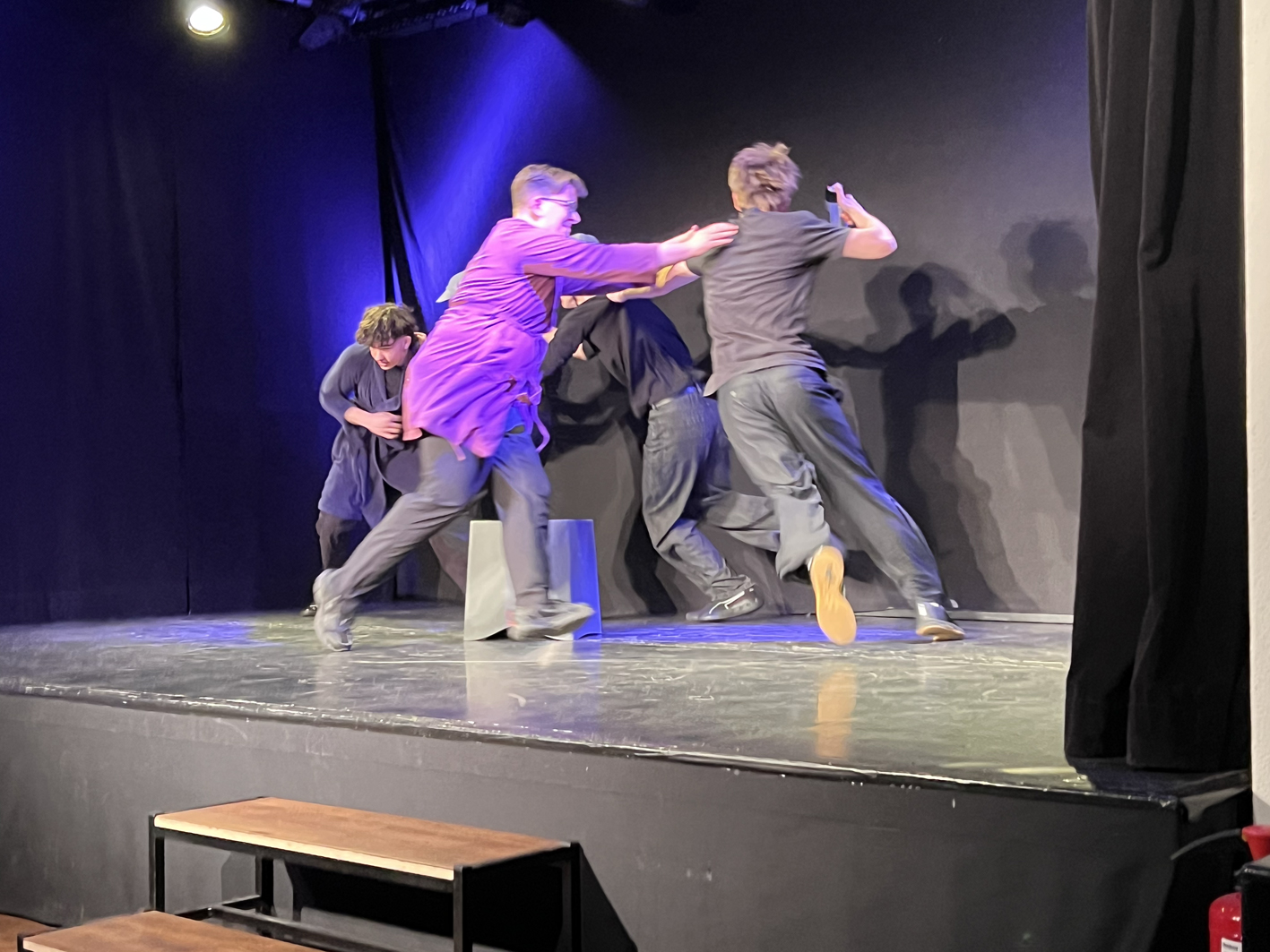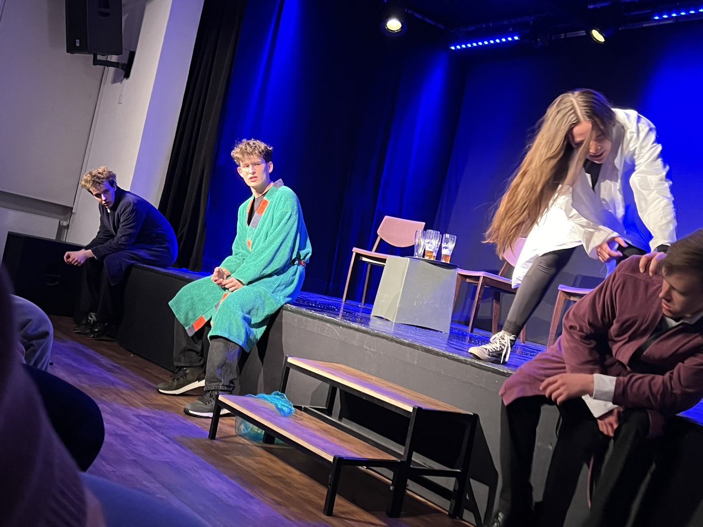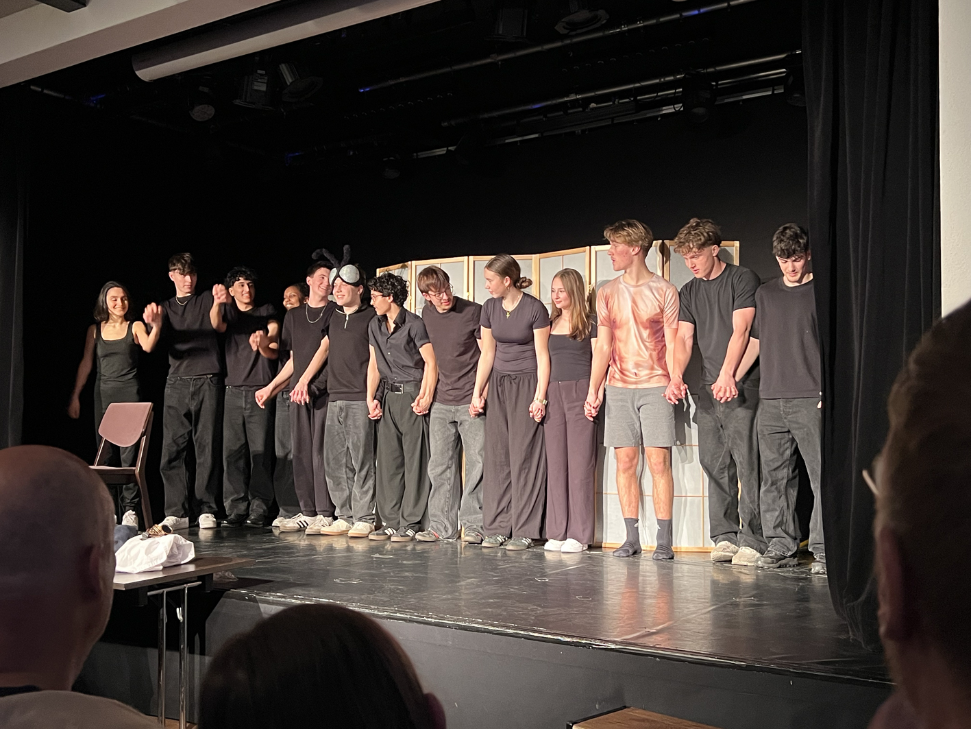 Nach monatelangen (Extra-) Proben kamen Ende März endlich die beiden Stücke der Darstellendes-Spiel-Kurse der 12. Klasse zur Aufführung: „Die Psychiker“ (nach Dürrenmatt, Leitung: Barbara Simons) und „Die Fliege“ (nach Langelaan, Leitung: Bernhard Godbersen) begeisterten das Publikum an zwei ausverkauften Abenden mit Präsenz, Spielfreude und verrückten Inszenierungsideen!
