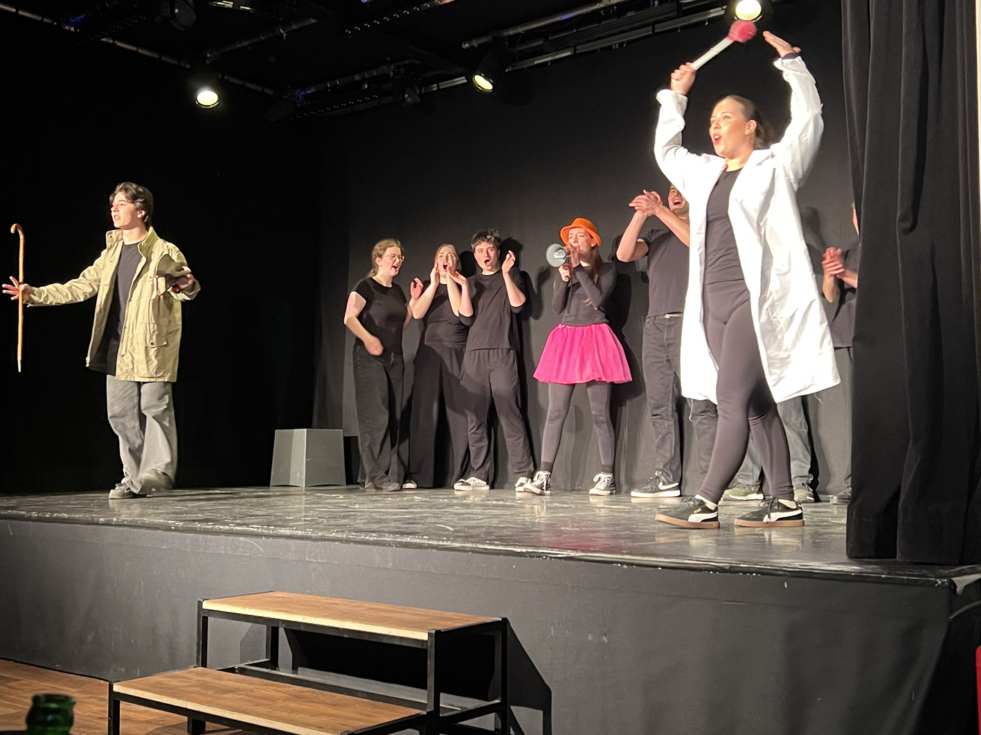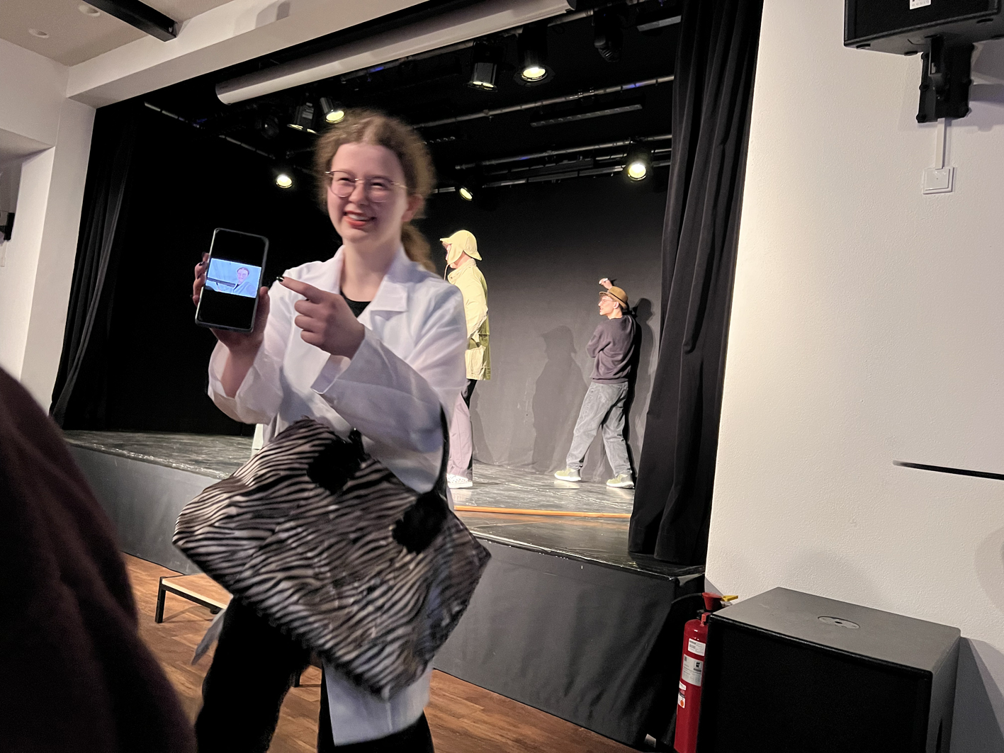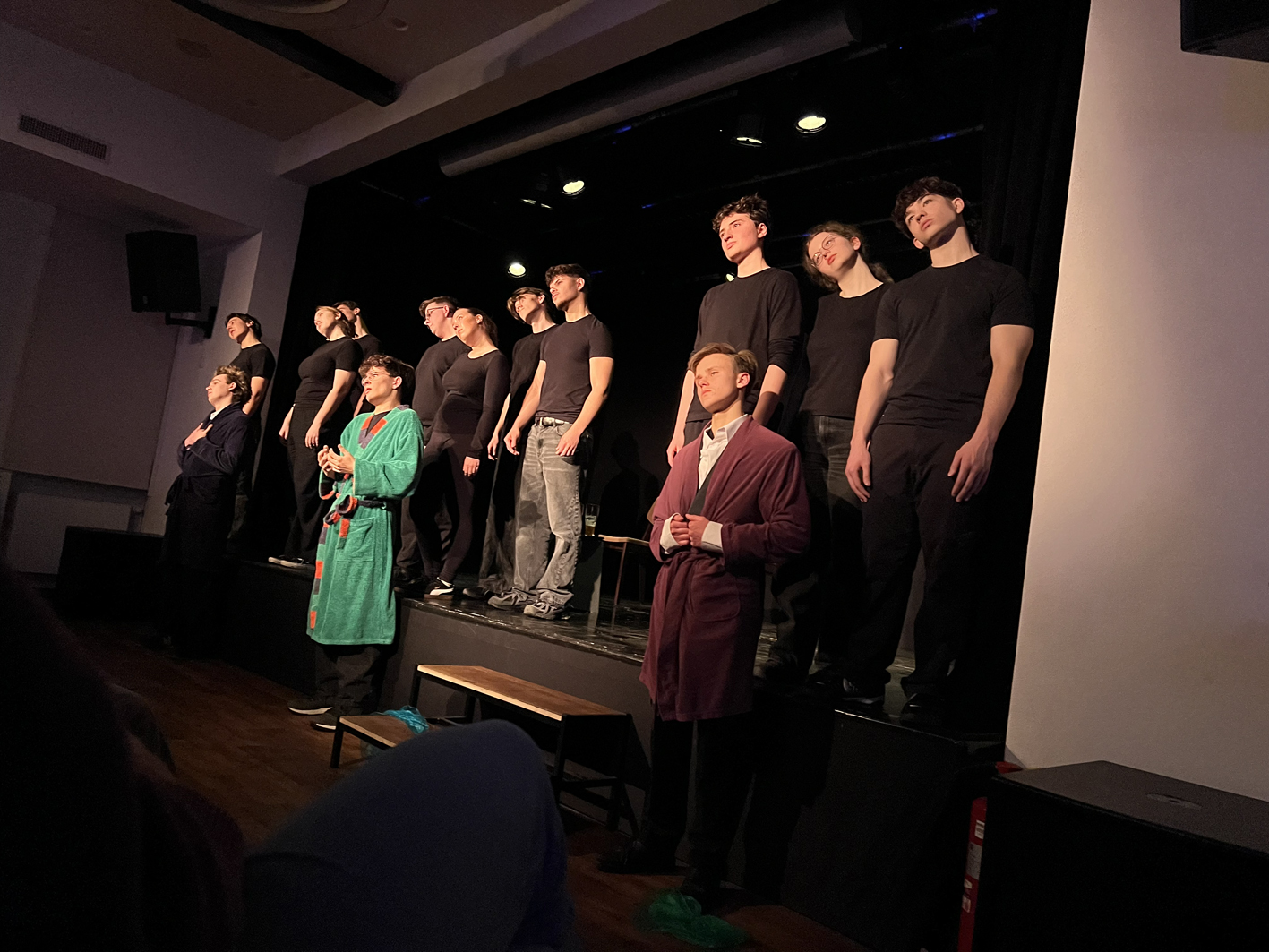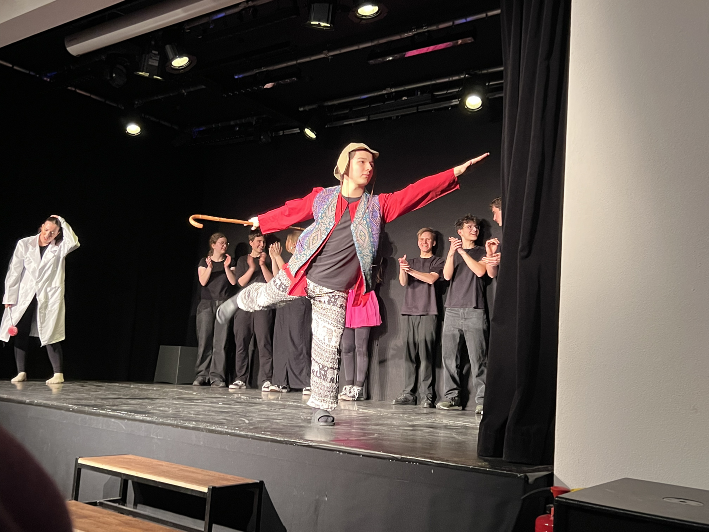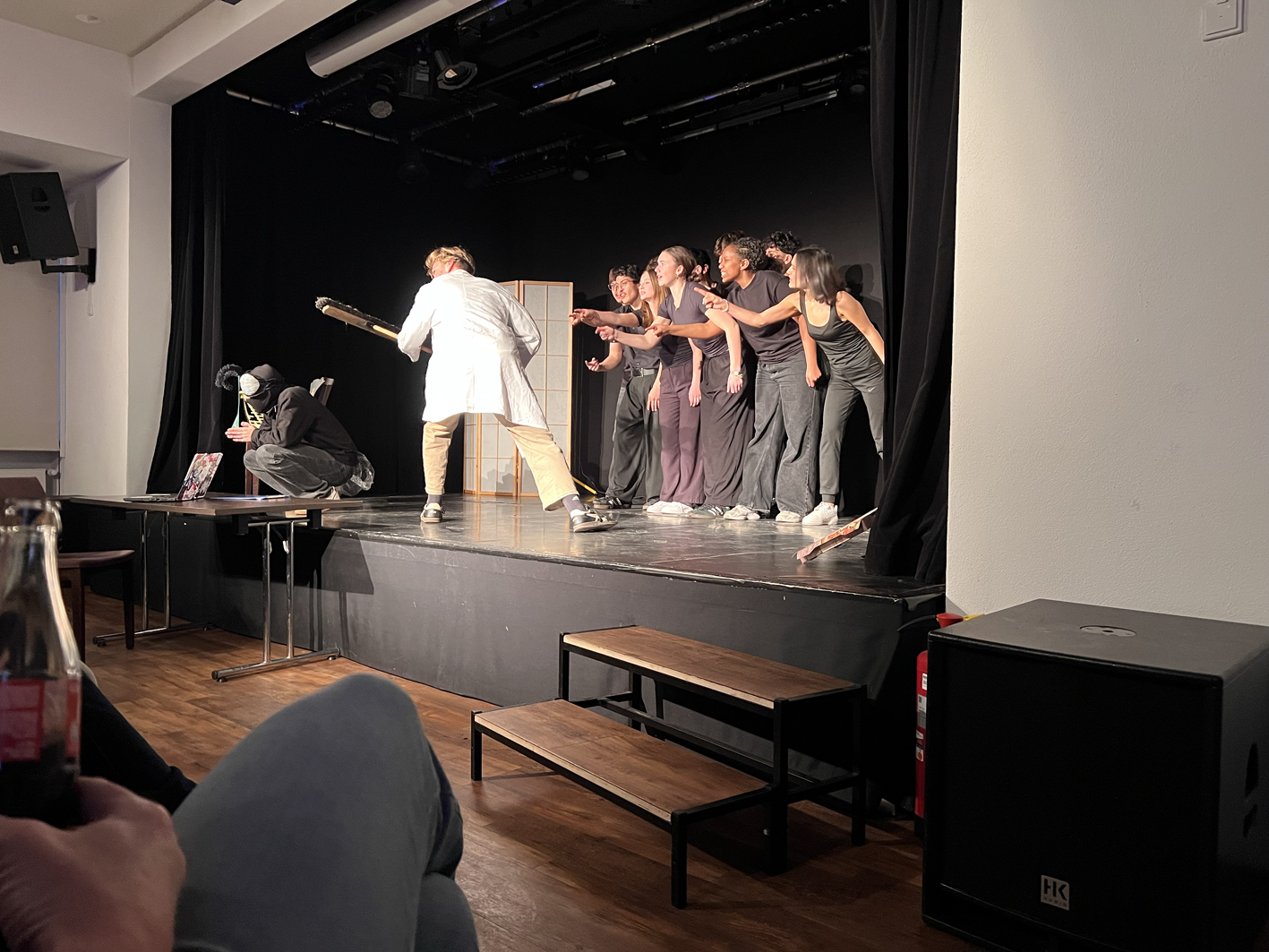 Nach monatelangen (Extra-) Proben kamen Ende März endlich die beiden Stücke der Darstellendes-Spiel-Kurse der 12. Klasse zur Aufführung: „Die Psychiker“ (nach Dürrenmatt, Leitung: Barbara Simons) und „Die Fliege“ (nach Langelaan, Leitung: Bernhard Godbersen) begeisterten das Publikum an zwei ausverkauften Abenden mit Präsenz, Spielfreude und verrückten Inszenierungsideen!