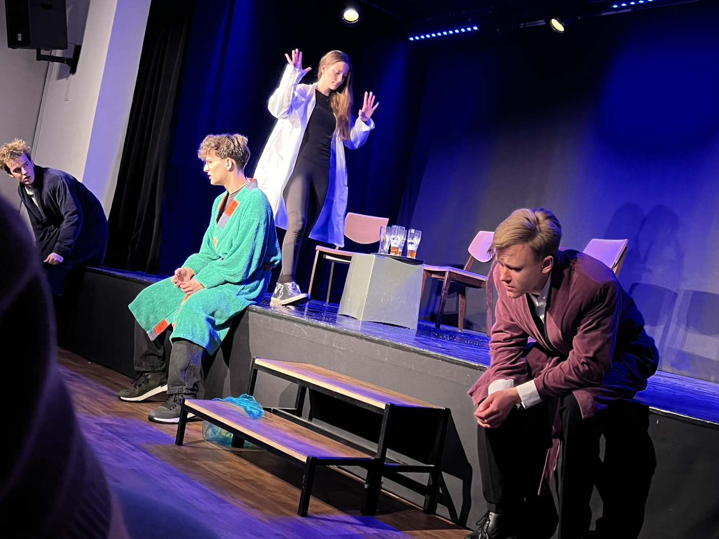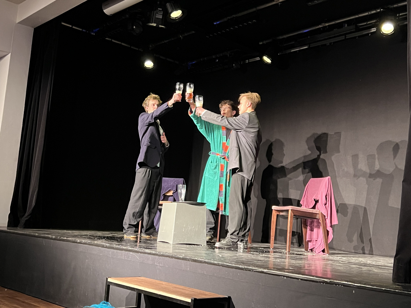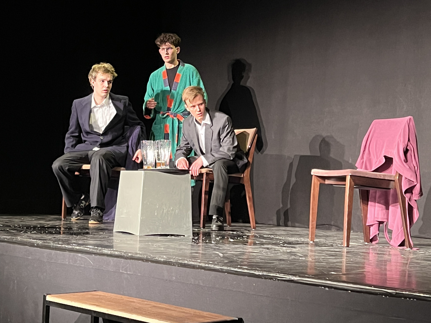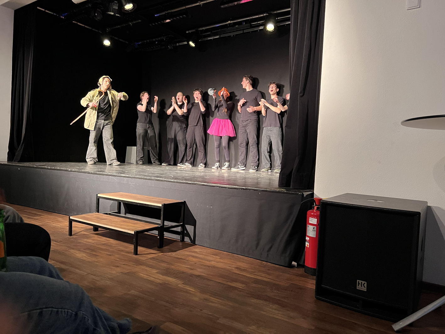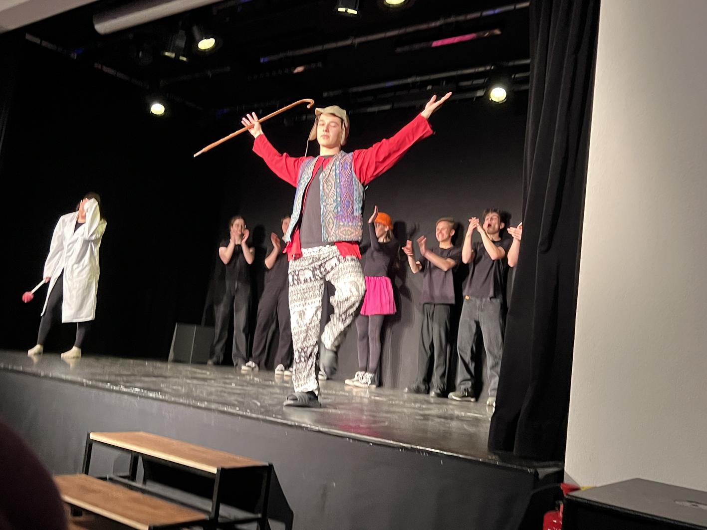 Nach monatelangen (Extra-) Proben kamen Ende März endlich die beiden Stücke der Darstellendes-Spiel-Kurse der 12. Klasse zur Aufführung: „Die Psychiker“ (nach Dürrenmatt, Leitung: Barbara Simons) und „Die Fliege“ (nach Langelaan, Leitung: Bernhard Godbersen) begeisterten das Publikum an zwei ausverkauften Abenden mit Präsenz, Spielfreude und verrückten Inszenierungsideen!