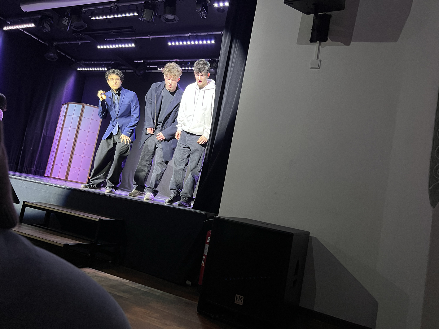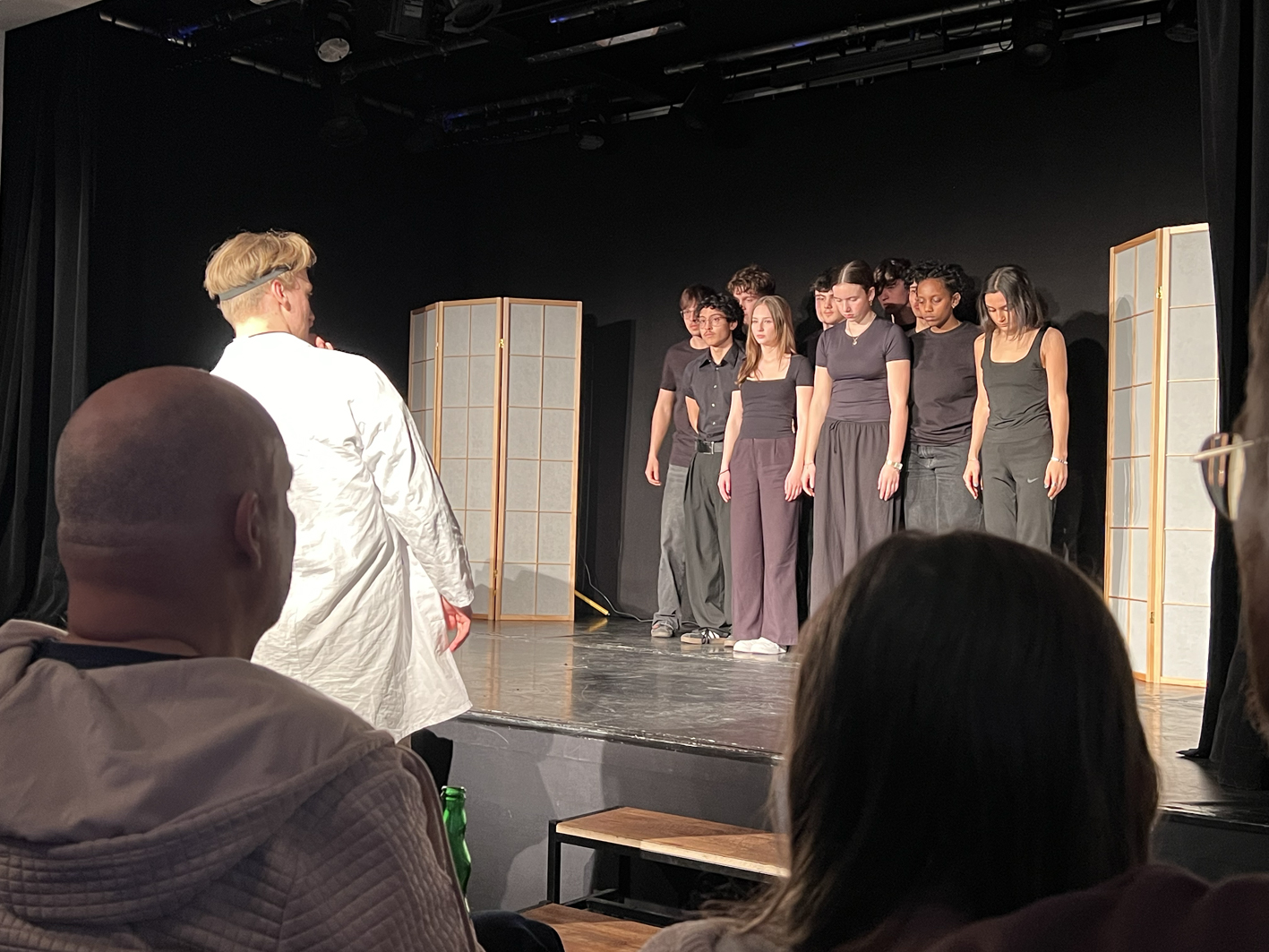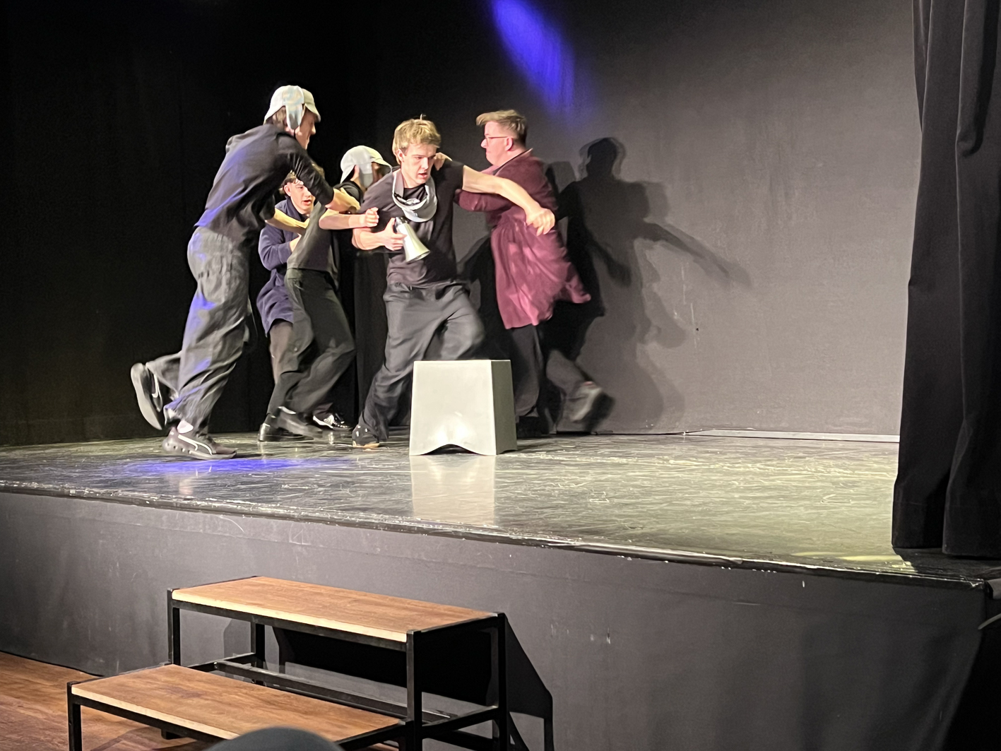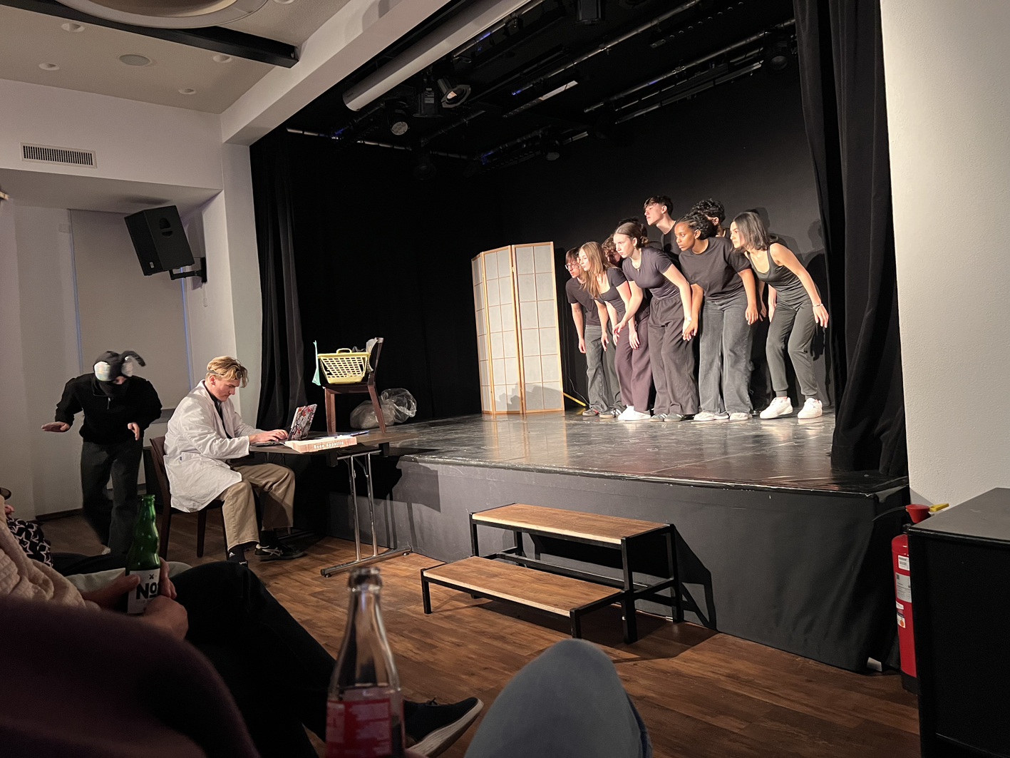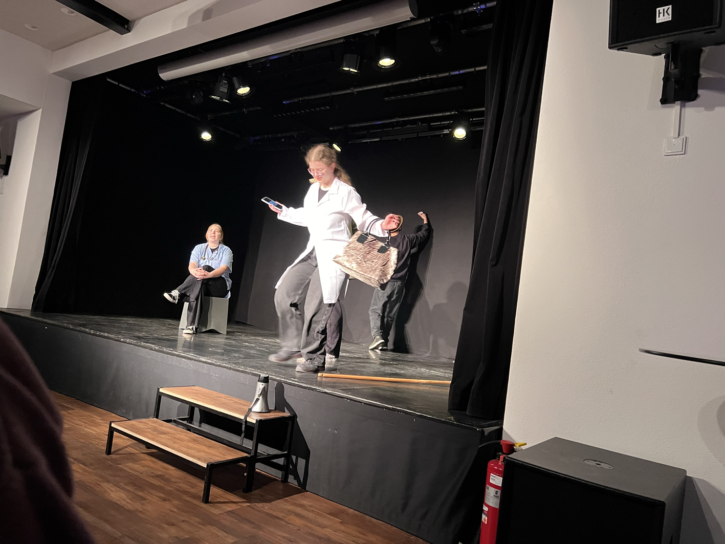 Nach monatelangen (Extra-) Proben kamen Ende März endlich die beiden Stücke der Darstellendes-Spiel-Kurse der 12. Klasse zur Aufführung: „Die Psychiker“ (nach Dürrenmatt, Leitung: Barbara Simons) und „Die Fliege“ (nach Langelaan, Leitung: Bernhard Godbersen) begeisterten das Publikum an zwei ausverkauften Abenden mit Präsenz, Spielfreude und verrückten Inszenierungsideen!