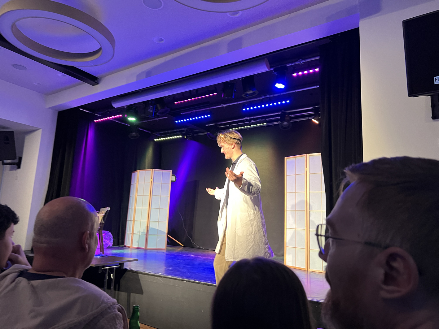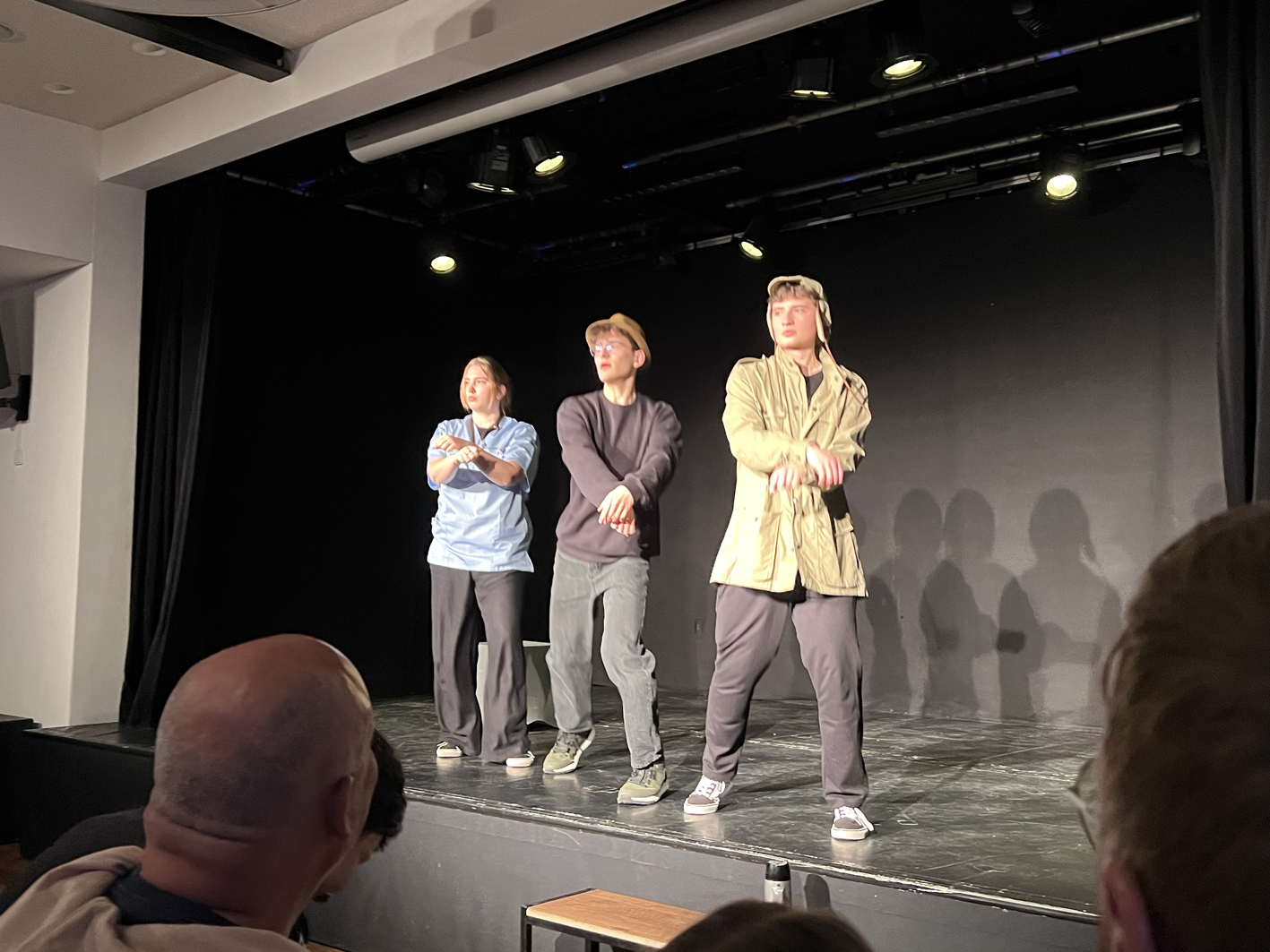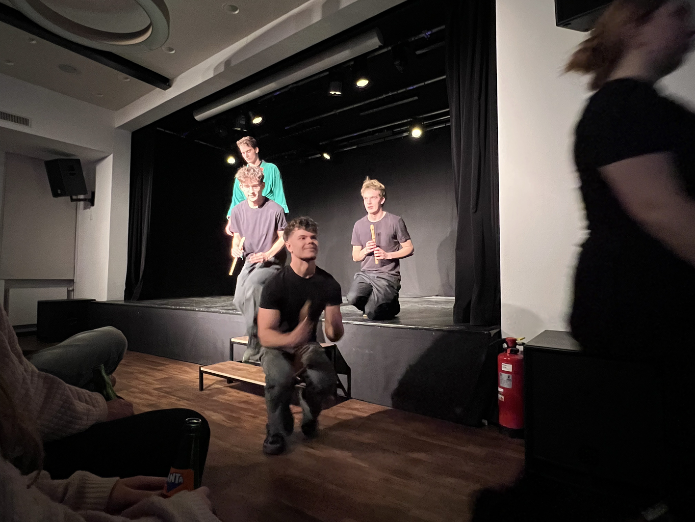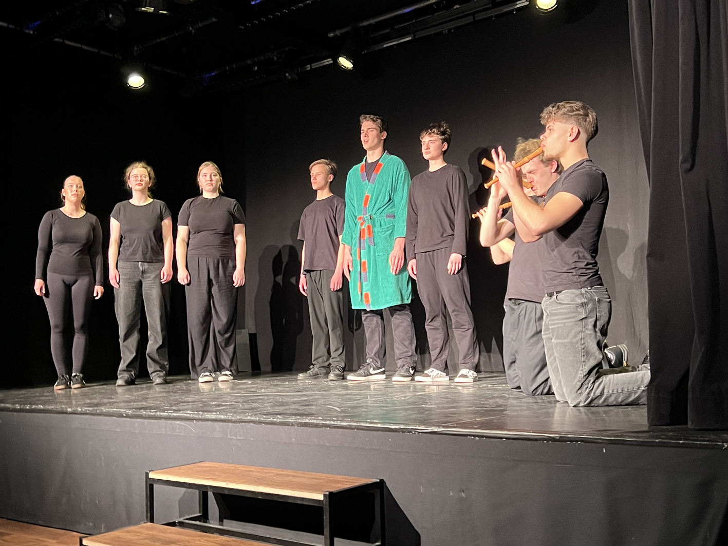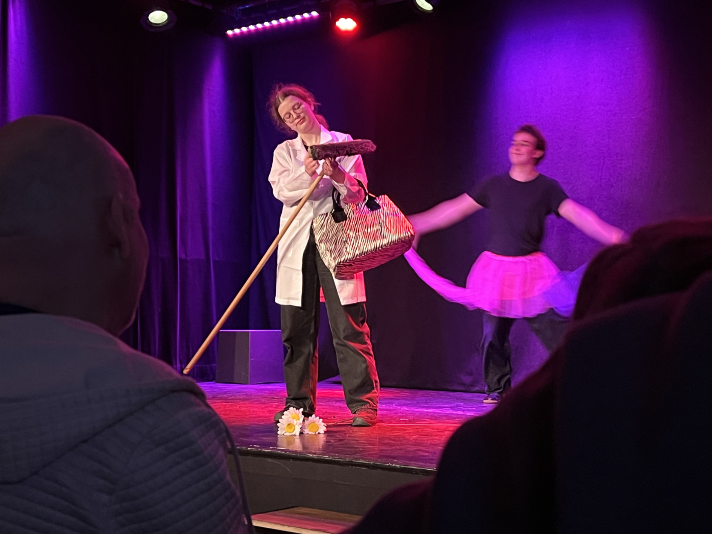 Nach monatelangen (Extra-) Proben kamen Ende März endlich die beiden Stücke der Darstellendes-Spiel-Kurse der 12. Klasse zur Aufführung: „Die Psychiker“ (nach Dürrenmatt, Leitung: Barbara Simons) und „Die Fliege“ (nach Langelaan, Leitung: Bernhard Godbersen) begeisterten das Publikum an zwei ausverkauften Abenden mit Präsenz, Spielfreude und verrückten Inszenierungsideen!